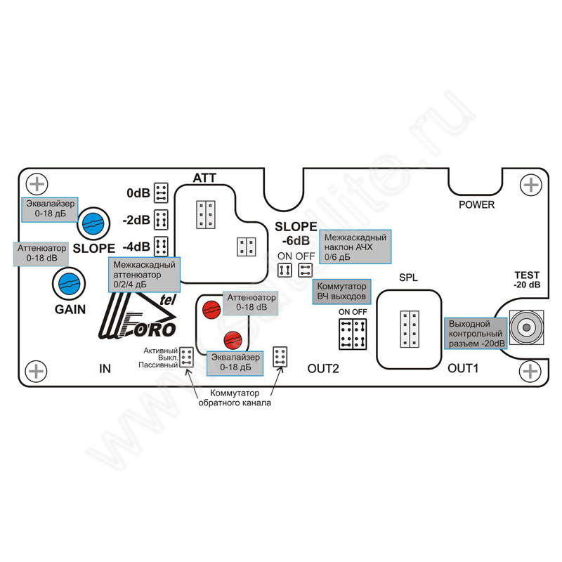| Межкаскадный корректор | 0/6 дБ |